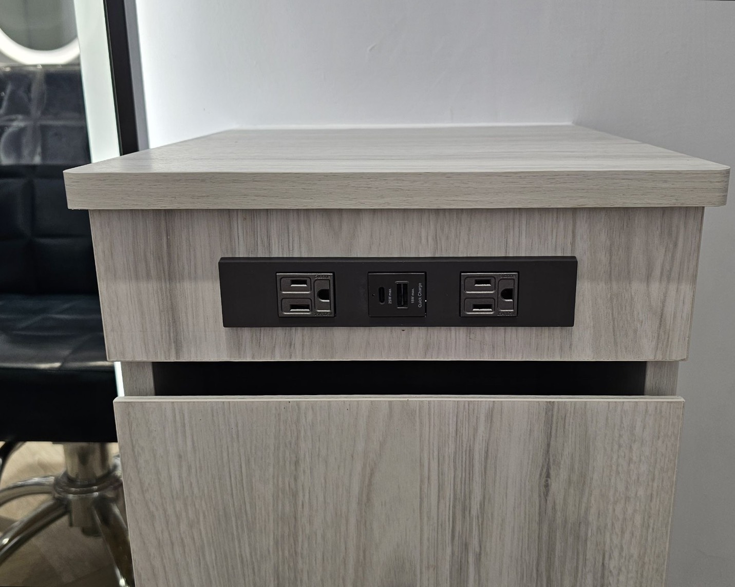 獨立置物櫃皆設有電源插座及充電孔,安心又便利的享受美髮時光。